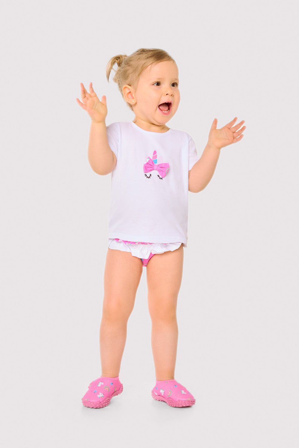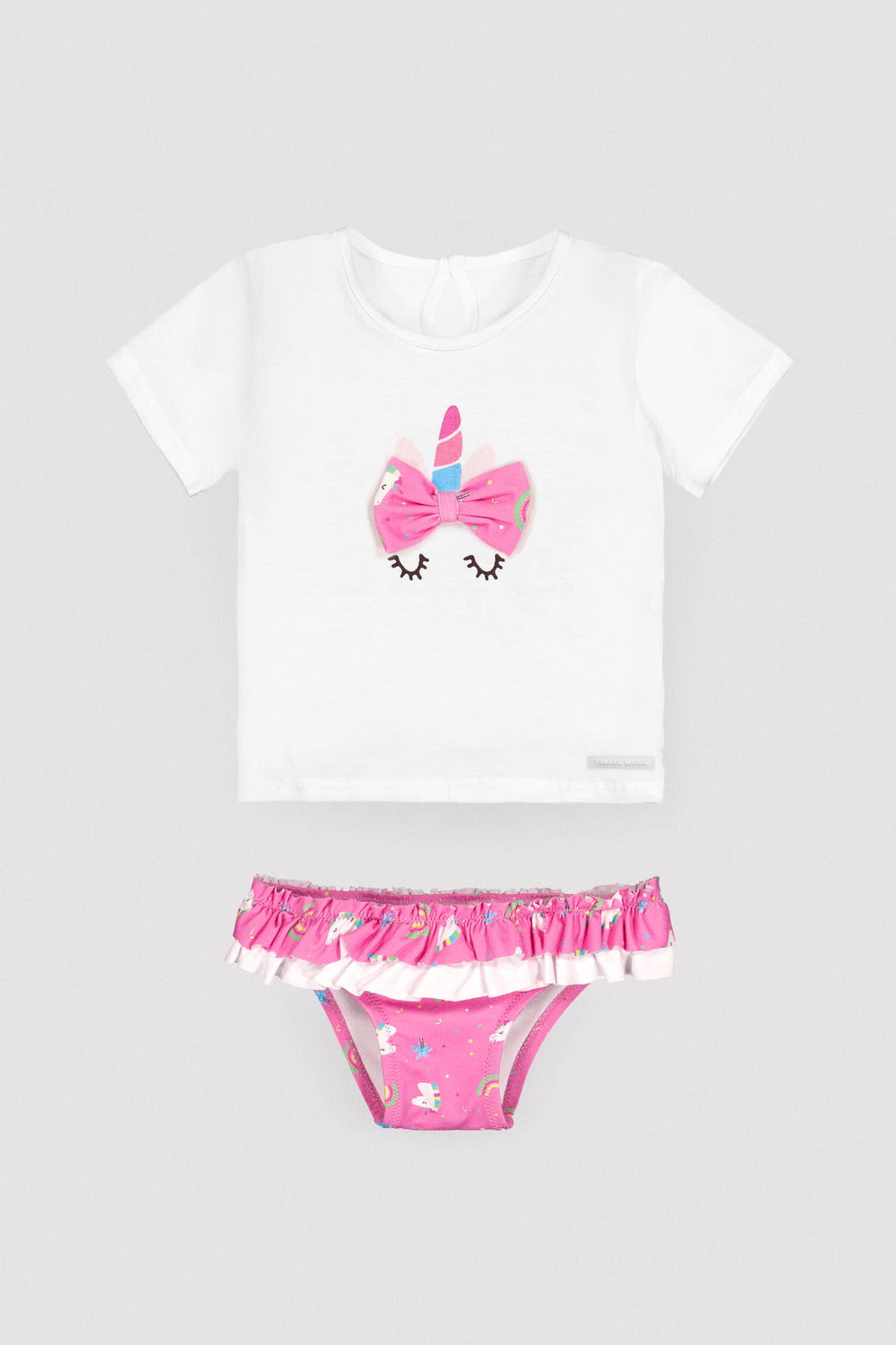 Set de camiseta y braguita con cara de unicornio y lazo 3D. Confeccionado principalmente en algodón natural para el máximo bienestar.