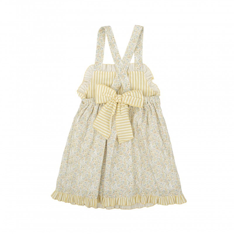 Vestido de niña con delicado estampado floral en tonos suaves que aporta un estilo dulce, romántico y veraniego. Un diseño ligero y elegante, perfecto para los días más cálidos.